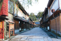 *金澤.東茶屋街 位於金澤的東茶屋街,被選定為傳統建築保存地區,街道巷弄間充滿了古味盎然的日本風。其中「懷華樓」金箔編織的榻榻米茶室、鮮豔朱紅的樓梯、加賀友禪的新娘嫁衣等,華麗的擺飾讓人驚豔。