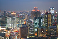 *空中庭園展望台 坐落於大阪新梅田城開放式的展望樓層,可360度俯視大阪市這個商業城中閃耀的繁華夜景,也被選為日本夕陽百景的眺望景點。地下飲食街「瀧見小路」再現昭和初期街景,可品嚐美味的大阪風料理。