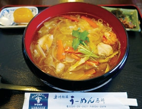 白石溫麵是白石市的代表美食,源自江戶時期,據傳是一位孝子為了腸胃不適的父親,所製做出的麵食。白石溫麵番所便是承襲這數百年的傳統手拉製麵方式,由製麵店所經營,代代相傳的溫麵老店,麵條以葛粉和相當健康的綠藻製作,湯頭清淡爽口相當值得一嚐。