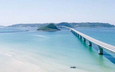 日本第二長的角島大橋全長1,780公尺,是下關具代表性的景點之一,當初在興建時為了保護原有的自然景觀,採用圍繞小島的彎曲設計,特殊的迂迴道路景觀便成為汽車廣告的主要拍攝地,由橋上望去可將海天一色的絕美海景盡收眼底。