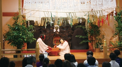 被日本人指定為民俗文化國寶、重要文化財的夜神樂,源於日本神話中天照大神的兄弟鬩牆故事,為了將躲入洞穴中的天照大神喚出,女神跳舞逗弄等共4段表演,如今每晚20點至21點在高千穗神社演出,可直接到現場付費觀賞。