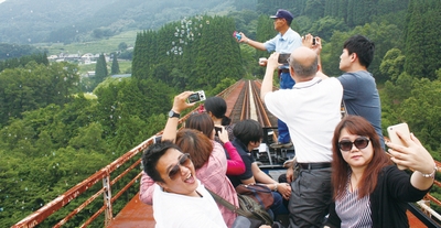 此外,宮崎縣境內從宮崎市前往高千穗町沿途,也有新公路的開通,使得原本需要3.5小時的車程可短縮為2.5小時,在運用東九州自動車道的商品包裝上,再延伸拉出『高千穗峽秘境』的亮點企劃,以峽谷輕舟體驗、日本最棒神樂宿古民家晚餐、夜神樂傳統表演、峽谷鐵道小火車空中吹泡泡的2天1夜套裝行程,讓整個商品更加令人耳目一新。本次踩線實地體驗後,也獲得全體同業團員的一致好評。