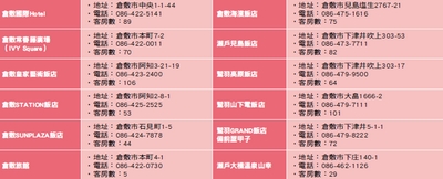 倉敷市外國遊客旅遊促進委員會旅館設施一覽
