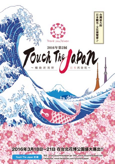 日本懷著「Thank You, Taiwan」的心意,從2015╱4╱17開始4天,於台北市國際展示會場「爭豔館」舉辦了第1屆Touch The Japan,擁有超過4萬人來場,以及包含13個電視台、31個節目與331則媒體報導,活動圓滿成功。