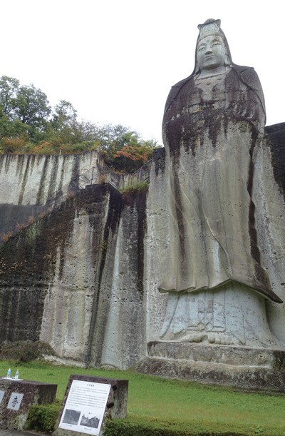 高27公尺‧大谷寺平和觀音 鄰近的大谷寺是建立在 高聳凹陷石壁內的稀有 佛寺,洞窟中敬拜著日 本最古老的石崖佛-大 谷觀音,是高達6公尺 的石雕千手觀音。大谷 寺前方的大谷公園中, 則有耗費6年時間純手 工誠心雕出的平和觀音 像,高達27公尺的壯觀 姿態加上周遭奇形怪狀 的高聳石牆,形成鬼斧 神工的天然奇景。