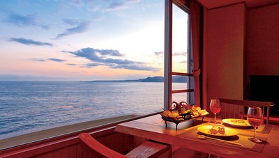 稻取莊溫泉飯店 稻取莊溫泉飯店與 伊豆七島遙遙相望, 所有客房皆為和室榻 榻米客房,且皆面對 窗外碧波粼粼的太平 洋。此外,飯店還擁有一棟8層的溫泉樓,設有 室內溫泉與室外露天各式溫泉浴池。