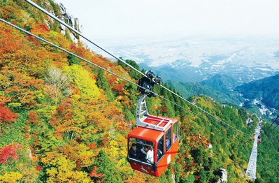 ▲旅客可搭乘纜車將御在所岳的楓紅美景盡收眼底。