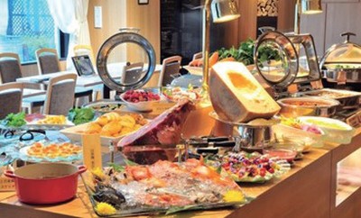 在寬敞的餐廳裡提供著日式和西式自助餐,精選當季最美味的食材烹飪成極品料理,讓旅客能夠大飽口福。