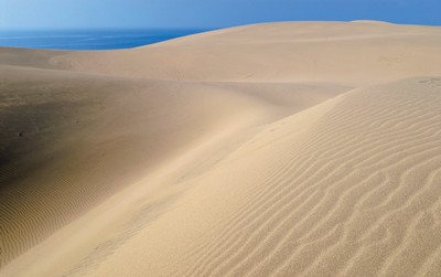 鳥取砂丘為日本最大砂丘,東西長約16公里;南北寬約2.4公里。隨著海風與潮汐的影響,分秒變換模樣的砂丘,宛如大自然的藝術品。