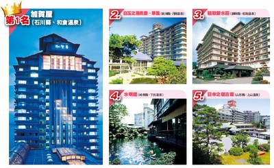 由旬刊旅行新聞社所主辦,在日本 旅行業界具有指標性的「專家票 選日本飯店旅館100選」,日前已公布 第41屆票選結果。經日本國內約16,612 間旅行社票選,此屆綜合旅館項目又再 次由石川縣和倉溫泉的加賀屋拿下榜 首,達成連續36年蟬聯冠軍的偉業。除 綜合項目外,加賀屋也奪下待客之道項 目的冠軍;料理項目方面則由位於鹿兒 島縣指宿溫泉秀水園飯店拿下第一;設 施及企劃項目則分別由新潟縣月岡溫泉 的白玉之湯泉慶、華鳳,以及山形縣上 山溫泉的日本之宿古窯奪冠。