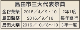 島田市博物館本 館展示「川越」相 關史料,和島田市 當地傳統祭典等資料。2016年更將迎接島田市3年1次、最 為盛大的「島田大祭」,同時也是「日本三奇祭」之一。 分館則收藏市民捐贈自明治、大正、至昭和各時期的文 物,創造如同時光隧道般的復古氛圍。台灣旅客除了解日 本年代演變,亦能從中回味過去日本時期的種種光景。
