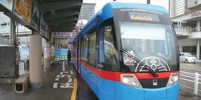 高岡市是哆啦A夢作者藤子不二雄的出生地,市內的萬葉線也推出了「哆啦A夢電車」,藍色的車身搭配上紅色的線條是哆啦A夢的象徵,而車廂門則設計成任意門的造型,十分有趣,推出至今廣受旅客以及喜愛哆啦A夢的粉絲們歡迎,是來到高岡市不容錯過的景點之一。