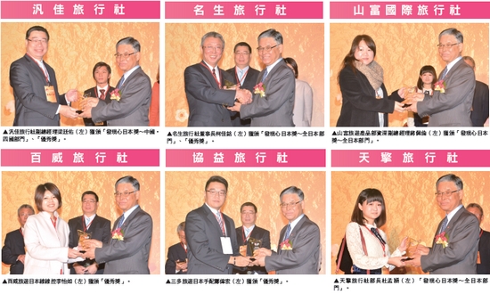 ▲日本觀光局頒發「發現心日本獎」、「優秀獎」給予優秀旅行社。
