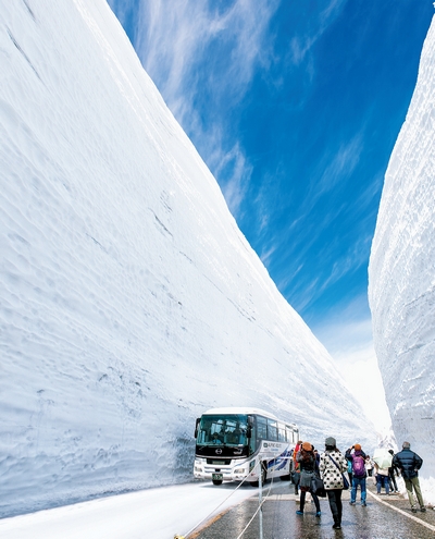 伴隨去年新開通的北陸新幹線,來往東京與富山的車程縮 短至128分鐘,讓原本就備受矚目的旅遊亮點立山黑部阿爾卑 斯山脈路線湧進更多人潮,去年造訪此處的海外旅客更突破 歷年新高,達到21萬5千人次。其中,最受旅客歡迎的「漫步 雪之大谷」今年也將正式從4/16揭開序幕,其他春季暢雪活 動如「雪之迷宮」、「雪之溜滑梯」、「雪之巨象」等也會 在4月至6月期間接連展開,歡迎各同業多多送客。