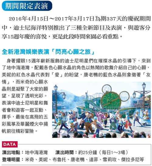 2016年4月15日~2017年3月17日 精彩熱鬧一整年 期間限定全新娛樂表演、園區裝飾、紀念商品豐富登場