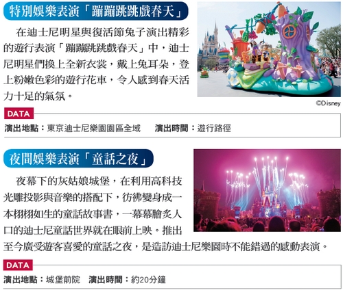 東京迪士尼樂園現正舉辦「迪士尼復活節」,即日起一直到6月15日為止,園區內到處裝飾了可愛的繽紛彩蛋,米奇、美妮等迪士尼明星也戴上兔耳朵,身穿亮麗新裝登場。另外,從7月9日起也將有特別活動「迪士尼和風夏慶」登場。