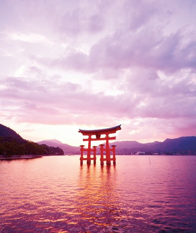 擁有約1,400年歷史的 嚴島神社,建築大部分均 被列為日本國寶。以藍 色海洋作為背景的朱漆神 殿,彷彿海底龍宮般莊嚴 華麗。矗立在海上的的大鳥居、潮起潮落的絕美景緻,每年都吸引超過 300萬海內外遊客到訪。