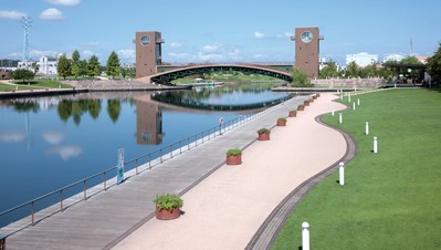 距離富山車站徒步10分鐘的富岩運河環水公園,占地廣大且景色寬闊,白天能登上瞭望台欣賞立山連峰與富山市景,且公園內也提供包租遊覽船服務,共3種船型可以選擇,最多容納5 5 人, 遊覽路線從環水公園出發,途經中島閘門再到岩瀨,60分鐘的航程1,500日圓,團體享有9折優惠。夏季(5~9月)還有浪漫的夜晚燈光秀。