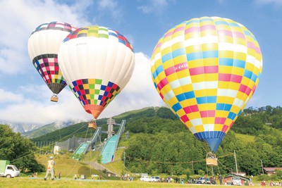 長野縣的白馬是戶外運動的天堂,除了較刺激性的泛舟、 滑皮艇之外,老少咸宜的活動則可選擇熱氣球。搭上熱氣球升上約30公尺的高空,欣賞北 阿爾卑斯山脈的連峰,體驗不同角度的絕景。
