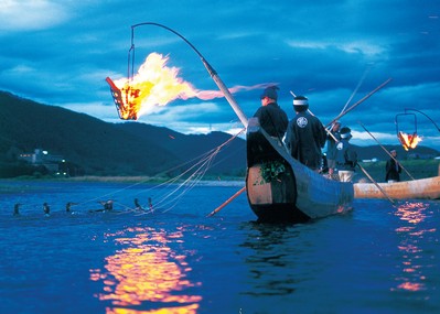 岐阜縣的長良川為日本名水百選之一的清流,每年5月11日至10月15日在此舉辦的鸕鶿(鵜飼)捕魚活動是流傳了 1,300年歷史的文化,也被指定 為國家重要無形文化財。此外, 利用鸕鶿捕魚的漁夫也是隸屬於日本皇室的官員之一呢!