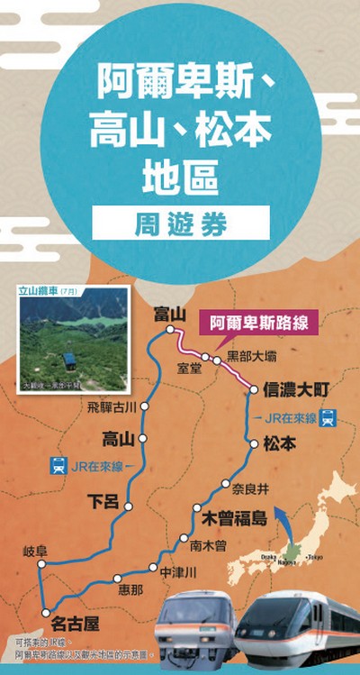 阿爾卑斯 、高 山、松 本地區周遊券