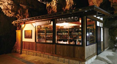 鐘乳石洞全年平均約10度的氣候是儲存 酒類的絕佳環境,天然的酒造成了洞窟 內特殊的獨家景點。2 0 1 4年才新設的 洞窟低溫貯藏庫,儲存了飛驒當地自產 的日本酒、獨家限定的原創酒等,從清 酒、燒酒到葡萄酒應有盡有,種類多達 40種以上,數量更高達2000瓶之多。