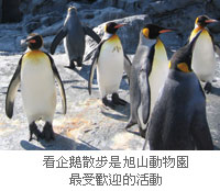 旭山動物園幾乎已經成了北海道最熱門的觀光景點!根據統計,旭山動物園2006年度的入園人次超過300萬遊客,目前在日本也只有東京的上野動物園和名古屋的東山動植物園具有如此高的集客實力。旭山動物園最為人津津樂道的便是「行動展示」,不只是讓遊客靜態欣賞動物而已,藉由活動設計讓遊客近距離接觸到動物們的生活及行動姿態,例如著名的冬日企鵝散步,便獲得極大迴響。