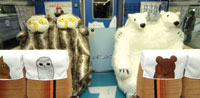 在1號車北極熊號中特設讓小朋友玩樂的專區,可以看圖畫書、吃甜點、聊天,繪有各種動物圖樣的椅墊,讓人彷彿進入森林般。