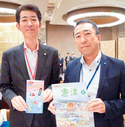 ▲(左起)海洋中心漁市村副店長池田成樹、唐津市商工觀光部副部長兼觀光課長宮崎一秀。