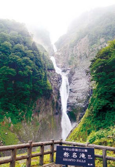 距離立山車站15分鐘的稱名 瀑布,高度落差可達350公尺, 被評選為「日本百選瀑布」之 一。瀑布兩側被秋楓浸染的岩 壁,將原本青蔥翠綠的景致妝 點得更加繽紛,呈現出與夏季 截然不同的風情。旅客可從立 山高原巴士內直接眺望瀑布美 景,或是在展望台下車,近距 離感受大自然的鬼斧神工。