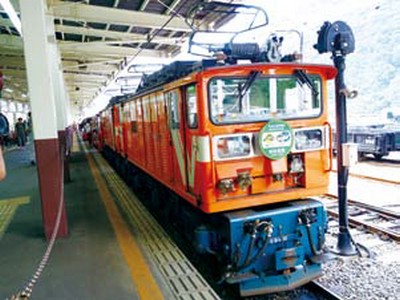 位於立山黑部周邊、日本最深 的V字型峽谷「黑部峽谷」美景 不遑多讓!搭乘緩慢行駛的電車 欣賞從宇奈月溫泉車站到櫸平車 站之間的美景,全長20.1公里的 路途上有41個隧道和25座橋梁, 其中架在深達56公尺的「後曳 橋」,更是整段路程中最具代表 性的景點。每逢秋季,被楓葉染 紅的景緻迷倒眾多旅客。