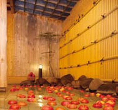 ▲在南田溫泉品嚐以蘋果為主題的宴席料理,餐後再到超人氣的「蘋果露天溫泉」享受與蘋果共浴的樂趣。