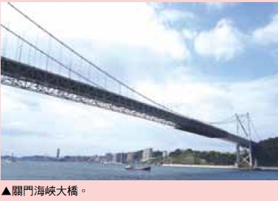 山口縣最西端,緊鄰著九州的是下關市,觀光亮點就是關門海峽大橋,從下關前往九州的門司港,有多種交通方式,本州和九州的最短距離可利用汽車、電車或船隻,約10分鐘內即可抵達,但最具特色的莫過於海底行人步道。全長3,461公尺的海底隧道除了汽車可行駛,還特別規劃780公尺長的行人步道,步行時間約需15分鐘,也是世界上罕見的行人過海隧道。
