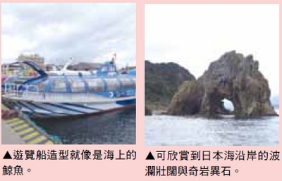 距離山口湯本溫泉約15分車程的長門市有座「北長門海岸國家公園」,可搭乘青海島遊覽船出海欣賞日本海沿岸的波瀾壯闊與奇岩異石,獨特景致又被稱為「海上阿爾卑斯」。遊覽船外觀以鯨魚或海豚概念設計,巡遊在形狀獨特的岩石之間,船程一圈約50分起,最長也有1.5小時,依行程不同,甚至可穿梭在岩石洞門中,感受大自然的鬼斧神工。