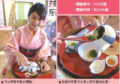 位於佐賀市區內的肥前通仙亭,在佐賀歷史民俗館區域附近,這裡提供了嬉野煎茶體驗,旅行社可安排旅客在此稍作休息,並體驗親手現泡煎茶,500元體驗費用還包含了日式和菓子,費用十分划算。其中最特別的是,煎茶的茶葉在泡完後還可淋上昆布醬油食用,口感有點像海苔的風味令人驚豔。