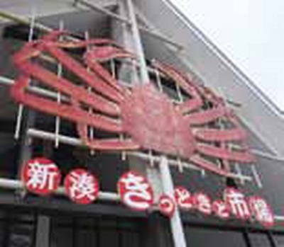 新湊漁港是富山縣內首屈一指的漁獲產地,不論是品質還是數量都是一級 品。位於富山灣海岸的「新湊市場」,除了有販售新鮮魚貨的海鮮市場 外,還能吃到擁有「富山灣寶石」之稱的白蝦以及紅楚蟹。市場內餐廳 「Kittokito亭」主打多樣化的海鮮料理,寬敞空間內有180席座位,團體也 能使用。此外,新湊漁港每天早晨與下午1點開始的海鮮競價拍賣,讓旅 客能近距離參與第一線的漁市交易現場。