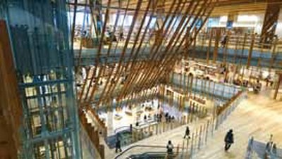 由世界級建築師隈研吾設計並與官方合作打造的「富山市玻璃美術館」, 是座結合圖書館、畫廊、咖啡廳以及玻璃藝術展示等多項機能的複合性設 施,同時也是擁有「玻璃之城」之稱的富山市指標性建築。新穎的大樓外 觀與開放感十足的裝潢可以看出設計師的巧思,內部除了有常設的玻璃藝 術品展覽外,還有販售各種原創商品的紀念品店以及咖啡廳等設施。