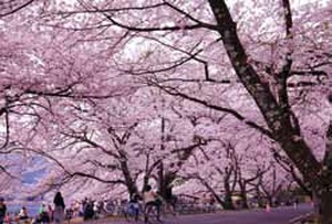 海津大崎的櫻花道沿著琵琶湖畔綿延約4公里, 兩邊約有800棵染井吉野櫻,是紀念大崎隧道完 工時所種植的。每年的4月上旬變身浪漫的粉紅 色隧道,不僅是滋賀縣數一數二的賞櫻名所,也 是日本櫻花百選。