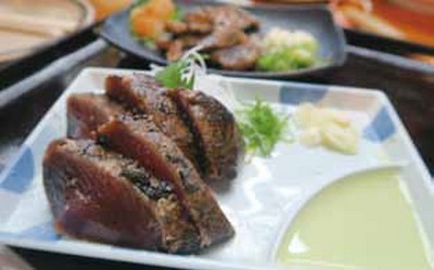 ▲老舖明神丸的鹽味炙燒半熟鰹魚是來此必嘗美味。