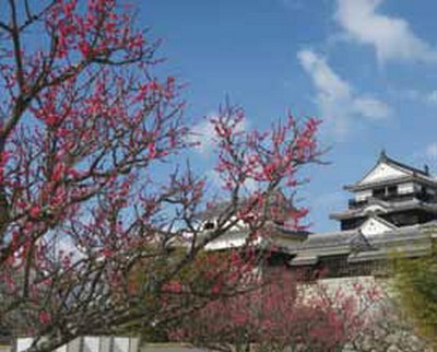 ▲松山城本丸內種植了許多梅樹及櫻花樹,春天來臨格外美麗。