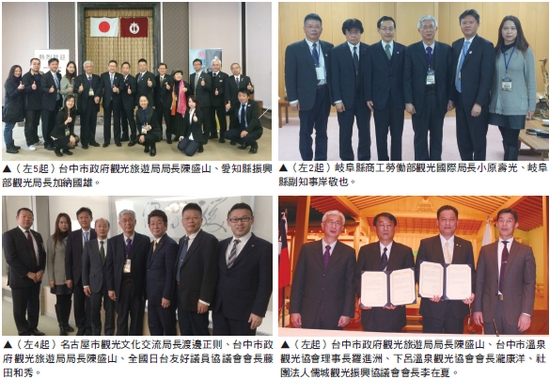 去年3╱29台日中部觀光友好交流備忘錄在名古屋簽訂,為促進雙方積極合作,台中市政府觀光旅遊局局長陳盛山一行13人於2月22日拜訪愛知縣、名古屋市與岐阜縣。