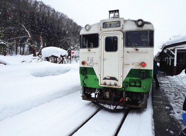 連結會津若松站和新潟縣小出站的「只見 線」,全長有135.2公里,不但擁有超夢幻的車 窗美景,更曾獲選日經新聞票選「最美雪景地 方鐵道Best10」第三名,吸引許多攝影愛好者前 往取景。每天6趟班次往返,建議可事先查好班 次通過時間,最近車站為「會津西方站」。