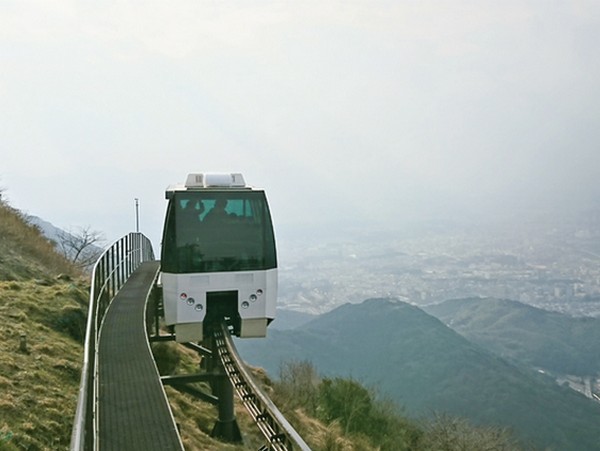 海拔高度662公尺的皿倉山,擁有「百億美元夜 景」,更是日本新三大夜景地之一。山頂上的草原 廣場白天是家族踏青野餐的好去處,晚上則是情侶 約會必訪的浪漫景點。旅客可以搭乘帆柱登山纜車 以及皿倉山纜車,透過玻璃窗欣賞傲人景致。
