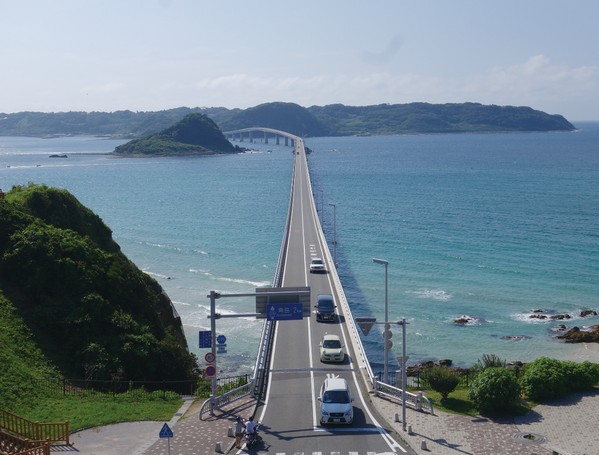 角島大橋是山口縣最具代表性的景觀之一,全 長1,780公尺,是日本第二長的大橋。橋上望去 的海天一色絕景,使其榮獲世界最大旅遊社群 「TripAdvisor」評選日本最受歡迎大橋第一名。 自2000年完成以後遊客絡繹不絕,美麗景致更 屢次出現在廣告、電影場景之中。