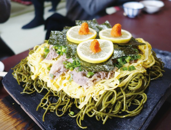 山口縣必吃特色料理「瓦片蕎麥麵」,在烤熱 的瓦片上放上茶蕎麥麵,加入牛肉、雞蛋絲等配 料。烤得金黃酥脆的麵條再淋上昆布醬油,配上 蔥、蘿蔔泥調味,吃得 到獨特的鍋巴口感。可 以在創始店「元祖瓦片 蕎麥TAKASE(たかせ)」 品嘗最道地的特色料 理。