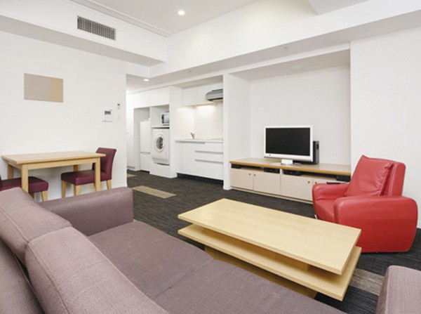隨著訪日旅客逐年增多,多樣化住宿型態也逐漸興起,除了 商務型飯店外,平價的膠囊旅館、適合家庭或小團體旅遊 的公寓式飯店、富有日式傳統風味的古民家等也開始受到旅客 矚目,旅客在住宿選擇上除了以交通作為首要考量外,舒適度以 及飯店特色也是相當重要的一環。位於新宿地區的「HUNDRED STAY東京新宿」,是間類似短租套房的公寓式飯店,比一般飯店 多了廚房可簡單烹調,有些甚至附有洗衣機,讓房客在日本也能 有家的感覺,且對需要長期出差、旅行或是家庭旅遊、小團體出 遊也相當合適。房型除了含客廳、廚房以及寢室的標準套房外也 有設計感十足的頂級套房,最小房型超過7坪,更提供健身房讓 房客免費使用。此外,飯店一樓就有超市及餐廳,距離擁有韓國 街之稱的大久保車站只要3分鐘,多樣韓式料理餐廳、韓國美妝 用品店林立,前往新宿也都在徒步範圍之內。