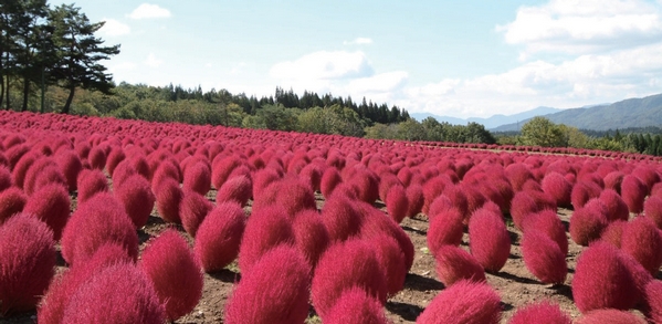 位於蛭野高原的「掃帚草公園」除了展望纜車、叢林飛翔(zipline) 等戶外活動體驗,9月下旬至10月上旬還有紅通通的掃帚 草可以欣賞,入場券+展望纜車來回+手打蕎麥麵及蔬菜天婦羅 吃到飽,原價3,100日圓,至10/22優惠套裝價1,800日圓。