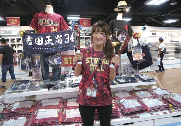 由主場球隊「大阪歐力士野牛」直營的 棒球周邊商品專賣店,超過8成都是主 場球隊的商品,但也能買到日本其他職 棒隊伍的商品。除了球衣、加油棒、毛 巾等看球賽時最直接的支持商品之外, 由於近年來女性球迷不斷增加,隨之推 出各種女生用的髮飾、吊飾等,更與發 源自大阪的運動品牌合作,推出時尚 版的運動系列。而目前則主打即將於 8╱1〜8╱3舉行,與福岡軟銀對戰賽 事的「夏之陣」系列。