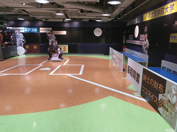 位於二樓的Bs SQUARE可免費入 場,是個能夠體驗棒球樂趣的最佳 去處,不僅有「大阪歐力士野牛」 過去的歷史紀念區、球隊會員的專 屬集點購物區,最吸引人的是可以 盡情拍照的區域。地面上特殊的3D 圖像能夠讓人拍出彷彿選手般的紀 念照,更利用攝影機與模擬的小球 場,透過螢幕畫面,自己就像是實 況轉播時的打擊手或捕手,此外還 有可以實際投球的收費體驗,測試 自己的球速。