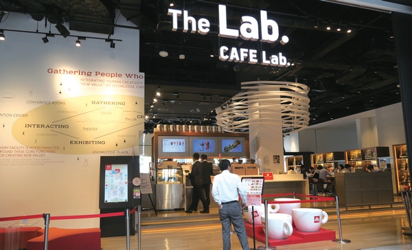 位在JR大阪站旁的「Grand Front Osaka」內,有座「KNOWLEDGE CAPITAL 知識中心」,雖然有商店、 餐廳,但有別於商業購物設施,特色 是讓來場者感受到與眾不同的新鮮經 驗。其中最特別的是能免費入場,體 驗最新技術的「The Lab.」,場內集結 約20企業的創新科技,無論是自己的 吉祥物,或是走入名畫的虛擬世界, 來場的人都能自由體驗,而場內服務 的交流員也會將大家實際經驗回饋給 企業,創造出更完美的未來。